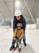 Silvan had er zin in om te gaan skieen in Snowplanet. Samen met pappa en opa klus voorzien van verplichte handschoenen en helm gingen we de koude en mistige piste op. Het was net echt. Dragan " een oud collega van Opa" stond bij de verhuur. Hij hielp Silvan aan skies, schoenen en een helm. Hij gaat ninnenkirt examen doen voor ski instructeur niveau 5. Das best een hoog niveau 👏😄. Later kwam hij ons nog vertellen dat je een bezem voor Silvan moest houden ipv hem beide aan een arm vasthouden en dan de berg af laten glijden. Silvan vond het heel leuk en deed het heel goed voor de 1e keer. Met de lift omhoog vond hij ook prachtig.